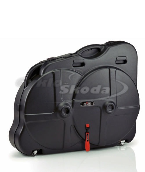 AERO TECH EVOLUTION - Skořepinový kufr ideální pro leteckou přepravu horského 26" a 27", triatlonového nebo silničního kola. Je vyroben z ABS desek o síle 5 mm a kolo se uvnitř upevňuje ke stěně kufru. Sedlovka se připevní za sedlo k horní rámové trubce. Kufr je dále vybaven šesti uzávěry, dva z nich mají číselné třímístné kódy, čtyřmi otočnými kolečky, vnitřním polstrováním a držadly pro snadnější manipulaci. Další příslušenství - pásek pro zvedání ze země (například při nakládání do auta), identifikační štítek na adresu a samostatné kryty na kola.